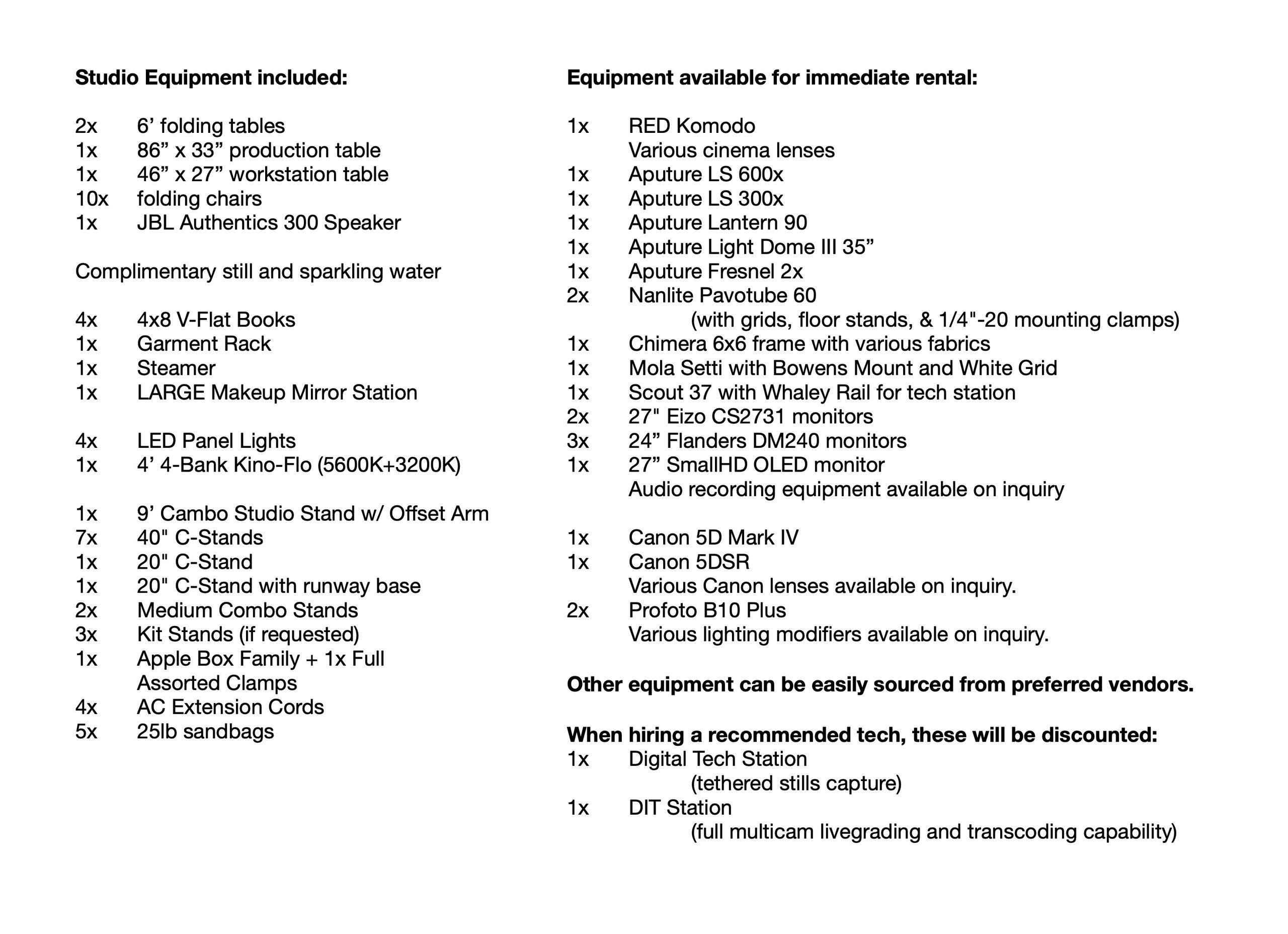With a variety of equipment on-site, our studio provides a convenient and well-equipped space for your photo and video production needs.
